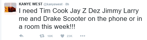 Kanye West took to twitter on Saturday to rant about the beef between Apple and Jay Z's Tidal telling Apple to pay Jay Z his money because they are "f---ing up the rap game." with their beef. Read his tweets after the cut.